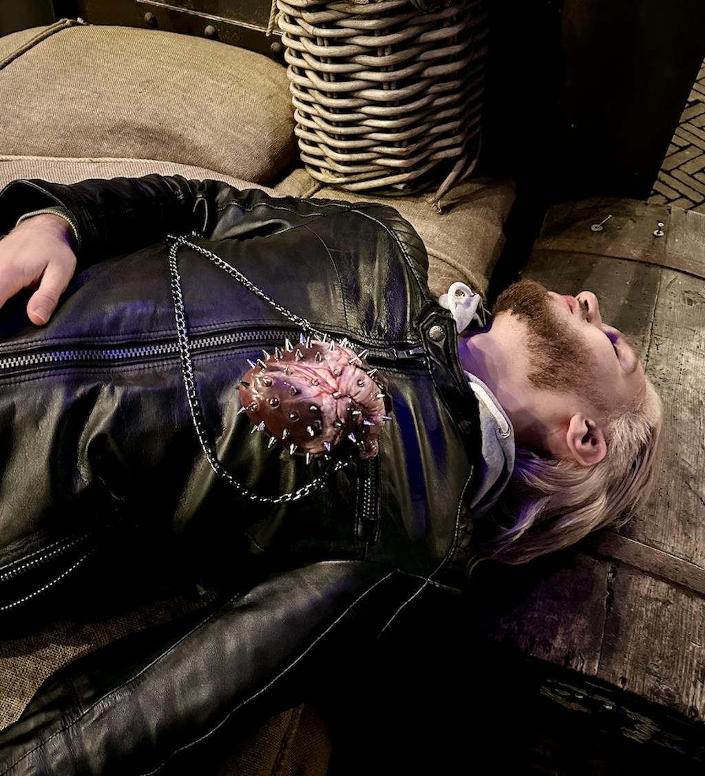 Crafted from premium platinum silicone and sculpted with extreme anatomical detail, this wearable art piece looks strikingly realistic while functioning as a statement crossbody mini bag.